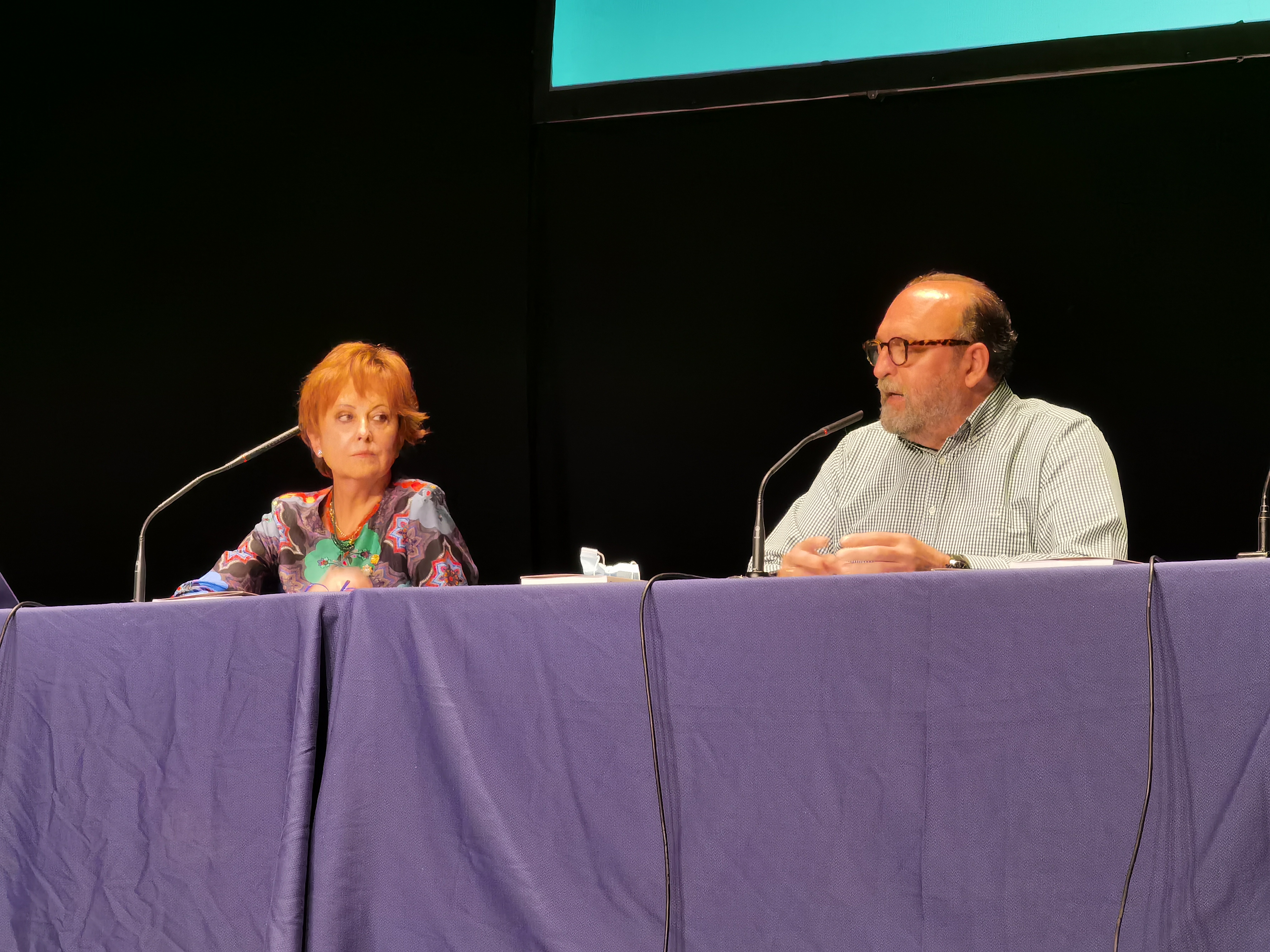 A continuación se desarrolló la primera ponencia de estas Jornadas con el título “El teatro en Almansa hasta 1939”, por la escritora y profesora Emilia Cortés Ibáñez acompañada de Francisco Linares, miembro del IEA. Autos sacramentales, festejos religiosos, compañías itinerantes, actores y actrices, revista, piezas musicales, la Barraca y Federico, los teatros Principal, Regio y Cervantes (hoy desaparecido) entre otros muchos temas, discurrieron durante los 60 minutos de su brillante intervención, basada en un minucioso proceso de trabajo e investigación. Fruto del cual surgió la feliz publicación de un libro que recoge por extenso lo mostrado en la ponencia, y que se presentó ayer al final del acto.