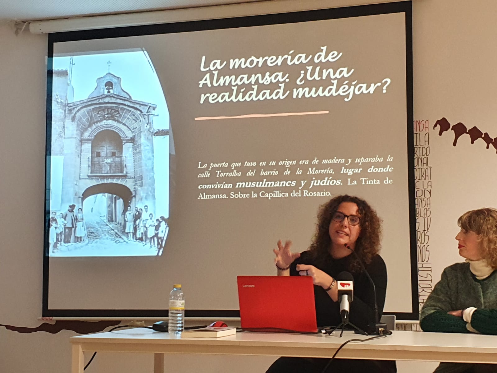 Los asistentes que abarrotaron el salón de actos de Turismo Almansa el martes 13 de febrero, recordarán durante mucho tiempo la charla ofrecida por la Doctora en Historia Belén Cuenca Abellán sobre los mudéjares y moriscos en la comarca de Almansa, la población islámica que habitó estos lugares y que desapareció entre las tinieblas del tiempo como consecuencia del proceso de cristianización que experimentó la península ibérica hacia el final de la Edad Media. Enmarcada en las actividades del 40 Aniversario de Torre Grande, la joven investigadora local imprimió con su discurso un característico sello personal, deslumbrando con sus dotes de divulgadora y ofreciendo sus conocimientos sobre una materia desconocida para el gran público, de la que lamentablemente hay escasas certezas y fuentes documentales.
