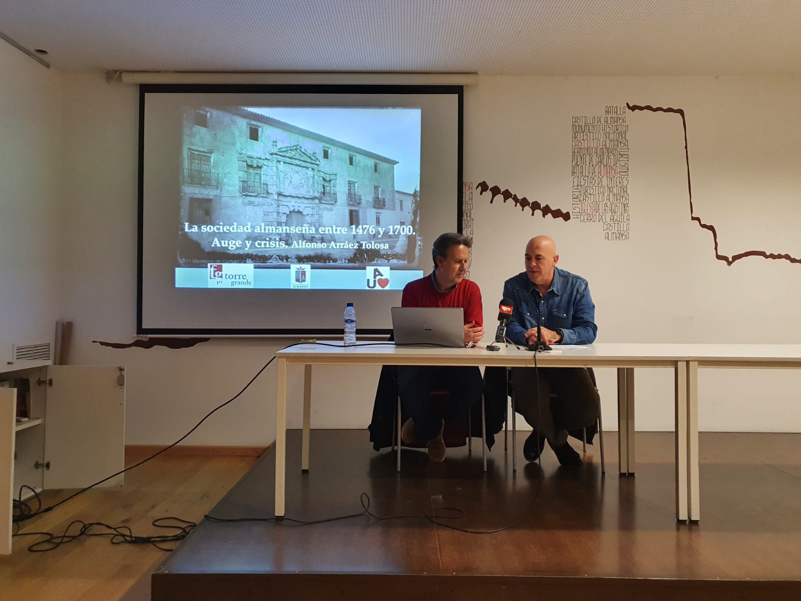 Los asistentes que llenaron el salón de actos de Turismo Almansa el pasado martes 12 de marzo, disfrutaron de un repaso por la Almansa de época Moderna y las gentes que vivieron en nuestras calles en dicha época, gracias a Alfonso Arráez y su conferencia titulada «La sociedad almanseña entre 1476 y 1700. Auge y crisis». Enmarcada en las actividades del 40 Aniversario de Torre Grande, la actividad fue introducida de manera muy amena por José Luis Megías, con la realización de un breve cuestionario al ponente.