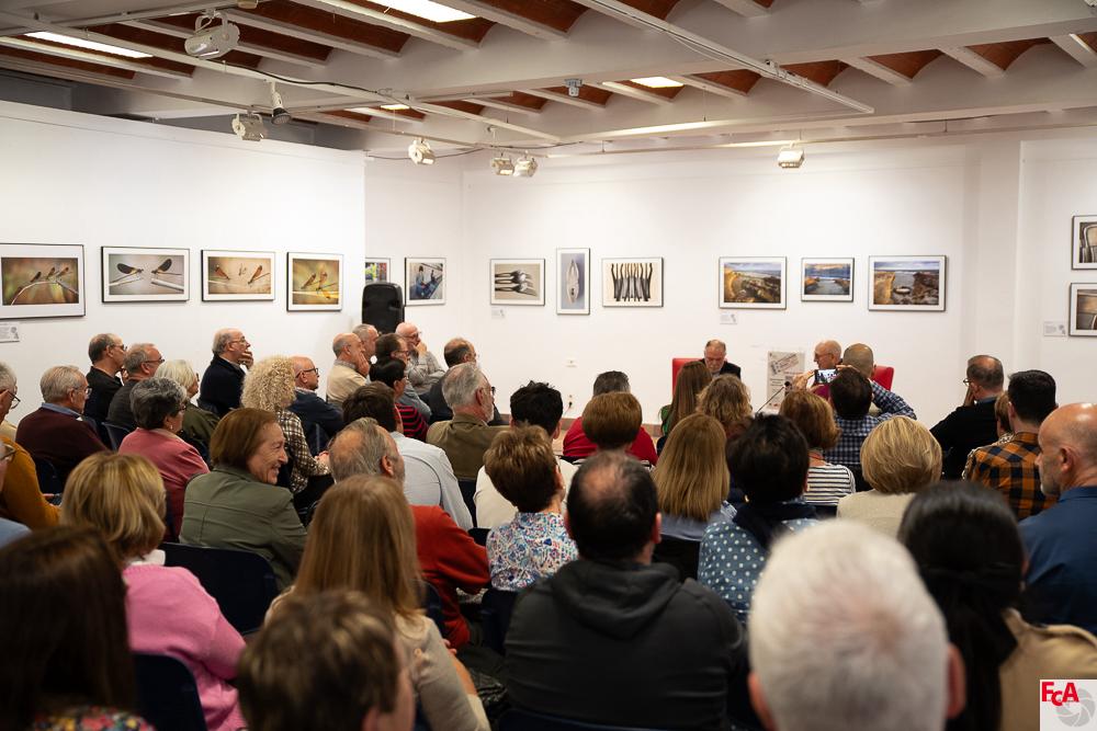 Paralela a su vocación de maestro pronto surgió otra de sus pasiones, la faceta artística, primero entre pinceles y después ya entre penumbras, carretes y productos químicos, que según el protagonista del acto le habían destrozado las manos, pero por el contrario, le habían incrementado sus ganas de experimentar, innovar y sobre todo compartir sus avances y descubrimientos con otros entusiastas como él del mundo de la luz. Ello lo hizo a través de las páginas de la revista Arte Fotográfico, un punto de encuentro y de aprendizaje de referencia, así como del asociacionismo, llevándole a fundar la Asociación Fotográfica de Villena, su localidad de residencia y cuyo modelo se extendió a otras localidades cercanas. En este contexto, las décadas de los 70 y 80 fueron años dorados: exposiciones, talleres, conferencias, concursos nacionales e internacionales, premios,… hasta que llegaron las tecnologías digitales y Pedro, como otros muchos, quedaron desconcertados ante “un muro de 5 metros muy difícil de saltar”. Sin embargo, su vocación artística le llevó de nuevo a superarse y reinventarse. Tanto, que supo encontrar otras vías de expresión y comunicación, decantándose definitivamente por el color y por cualquier tema que le hiciera sentirse libre.