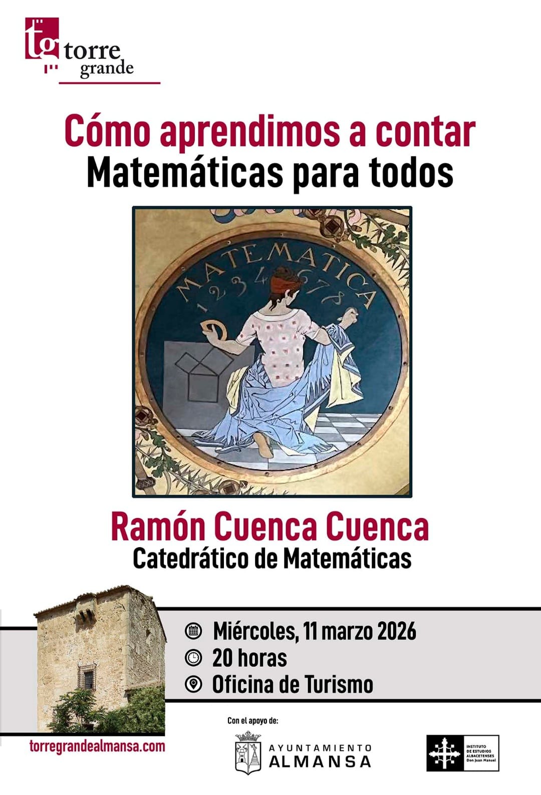 Tras su presentación por Rafael Martínez Tomás, miembro de la Junta Directiva de la asociación Torre Grande, Ramón dedicó su ponencia a mostrar diversas curiosidades y paradojas de su disciplina, que hicieron las delicias de los asistentes. Entre ellas, la creación del número 0 por la cultura hindú; las deficiencias del sistema de numeración romana a la hora de realizar operaciones simples, lo que impulsó su sustitución por el actual sistema arábigo; o que el día de las Matemáticas es el 14 de marzo, derivado del número pi: el 3,14. Reflexionó asimismo sobre la posibilidad de contar historias a través de esta ciencia, algo necesario para suavizar su a priori carácter áspero.