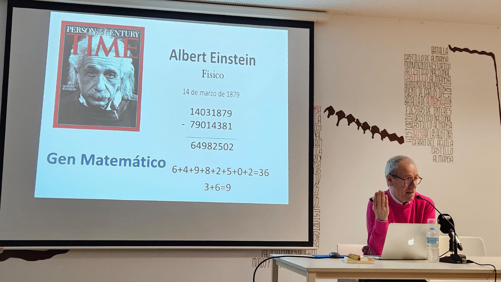 Este pasado miércoles 11 de marzo se desarrolló una conferencia organizada por nuestra asociación, a cargo de Ramón Cuenca Cuenca, catedrático de Matemáticas y profesor jubilado del I.E.S. José Conde de Almansa. Durante unos 60 minutos, en un repleto salón de actos Turismo, el ponente disertó acerca de la ciencia Matemática, con el claro objetivo de acercarla al gran público.