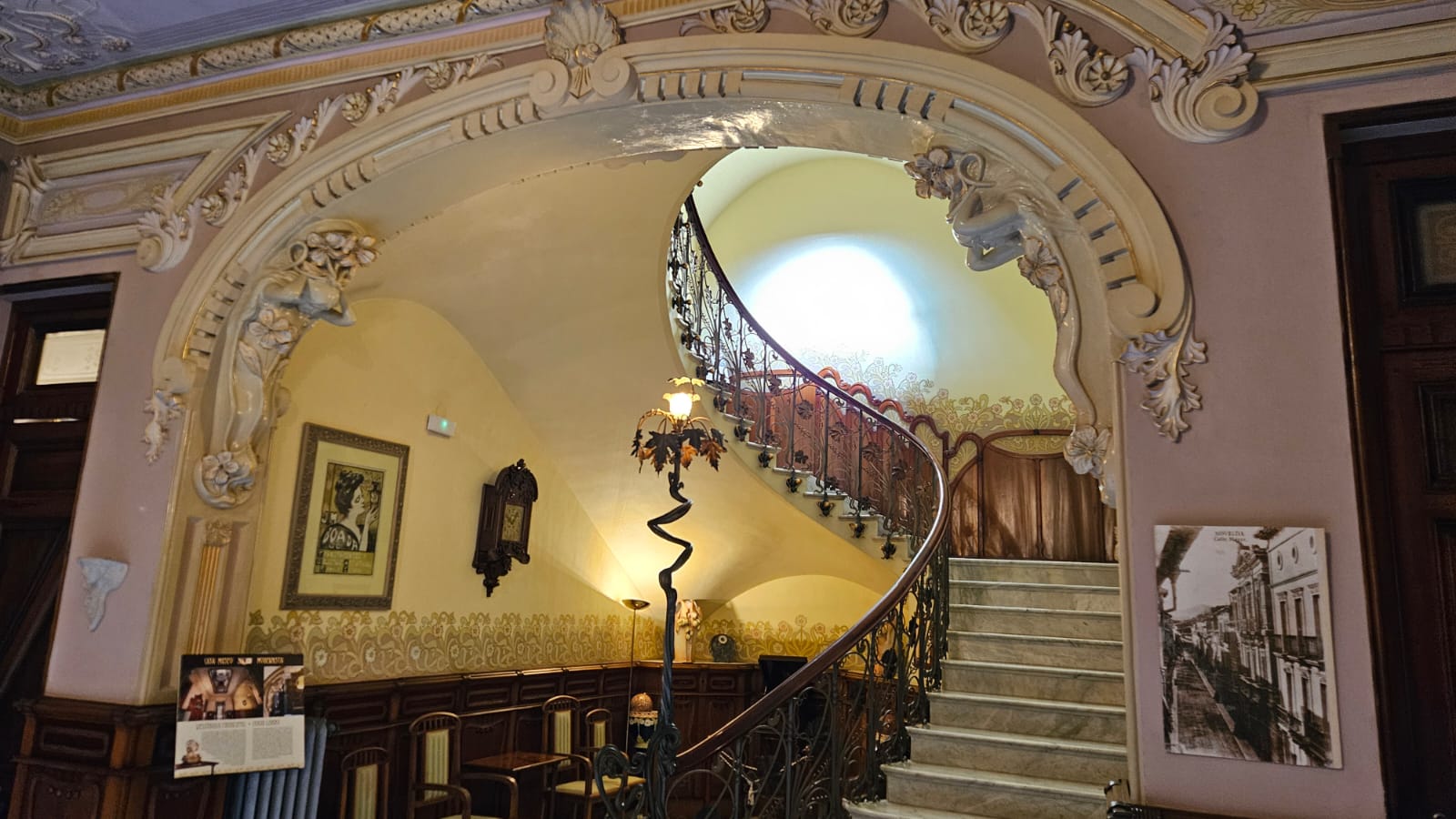 Y nada más llegar, en un primer paseo, lo pudimos comprobar con una pequeña muestra de fachadas y casas relacionadas con las familias más influyentes del momento y que potenciaron todo lo relacionado con este movimiento arquitectónico, artístico y diríamos que casi vital. La primera parada, donde a su vez desayunamos, fue el Casino, lugar emblemático de la ciudad y que hoy muestra con orgullo una fabulosa estampa de jardines, estancias y mobiliario de época.