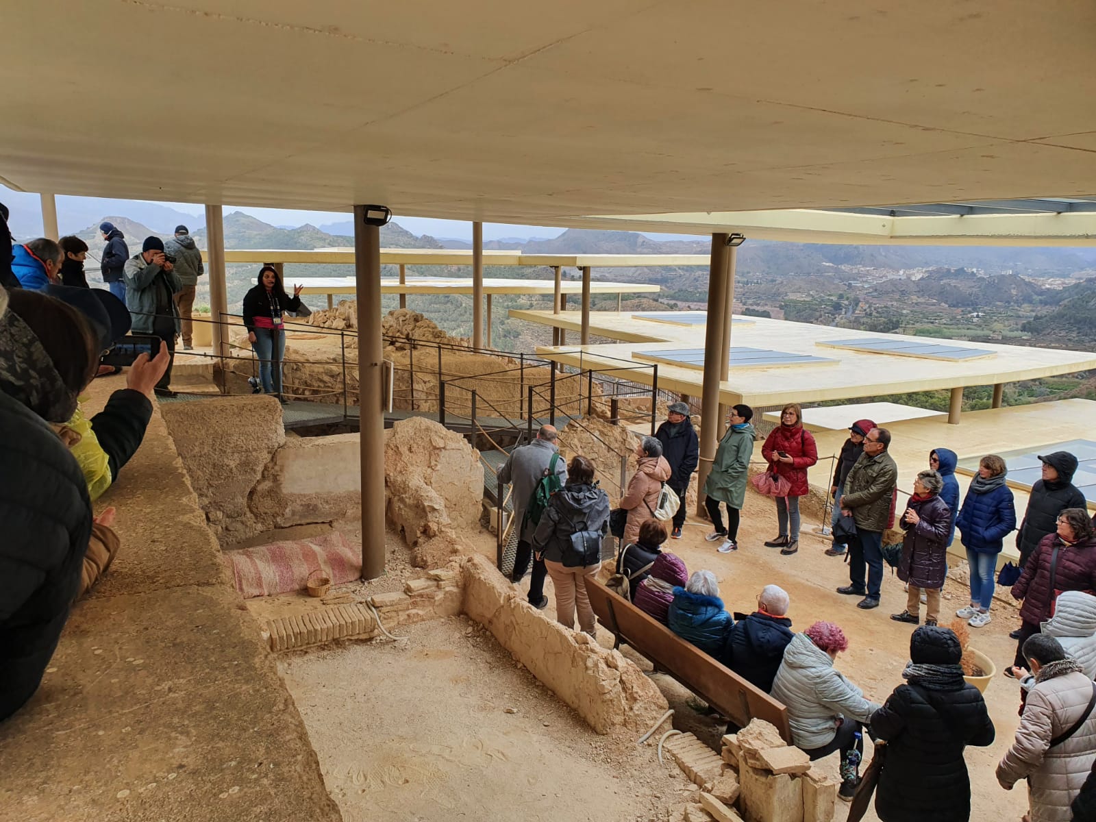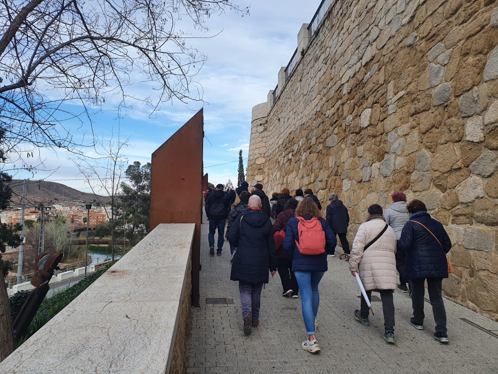 Después de la comida en el restaurante Maripinar, donde pudimos disfrutar de algunos platos de la gastronomía murciana, la tarde soleada nos recibió en el recuperado margen del río Segura. Posteriormente, subimos andando por la rampa que bordea el lienzo de murallas y que llega hasta el Balcón del muro desde donde se contemplan unas bonitas vistas de la vega del Segura. Después de atravesar la antigua puerta de la ciudad junto a la ermita de San Bartolomé, la primera iglesia que tuvo la Cieza cristiana, accedimos al casco histórico de la localidad en cuya parte central se levanta la Plaza mayor y la basílica de la Asunción, que llama la atención por su original campanario en estilo ecléctico. Finalizamos nuestra visita en el Museo Siyasa, que presenta un recorrido por la historia de la localidad desde la prehistoria hasta el siglo XX, destacando su colección de piezas sobresalientes procedentes del yacimiento de Siyasa como una jarra esgrafiada o una lamparita de vidrio, y la reconstrucción de dos viviendas con elementos constructivos y ornamentales originales.