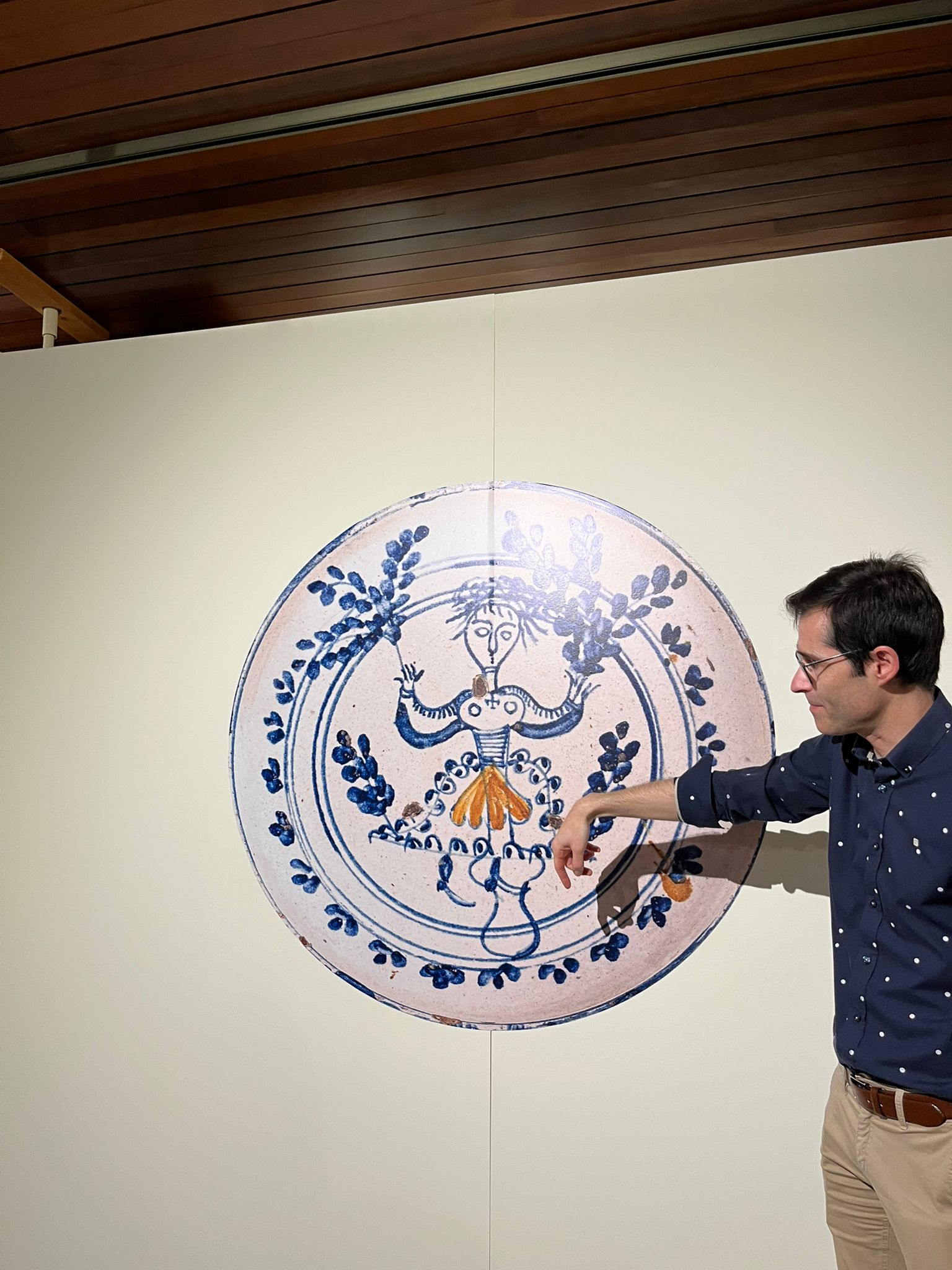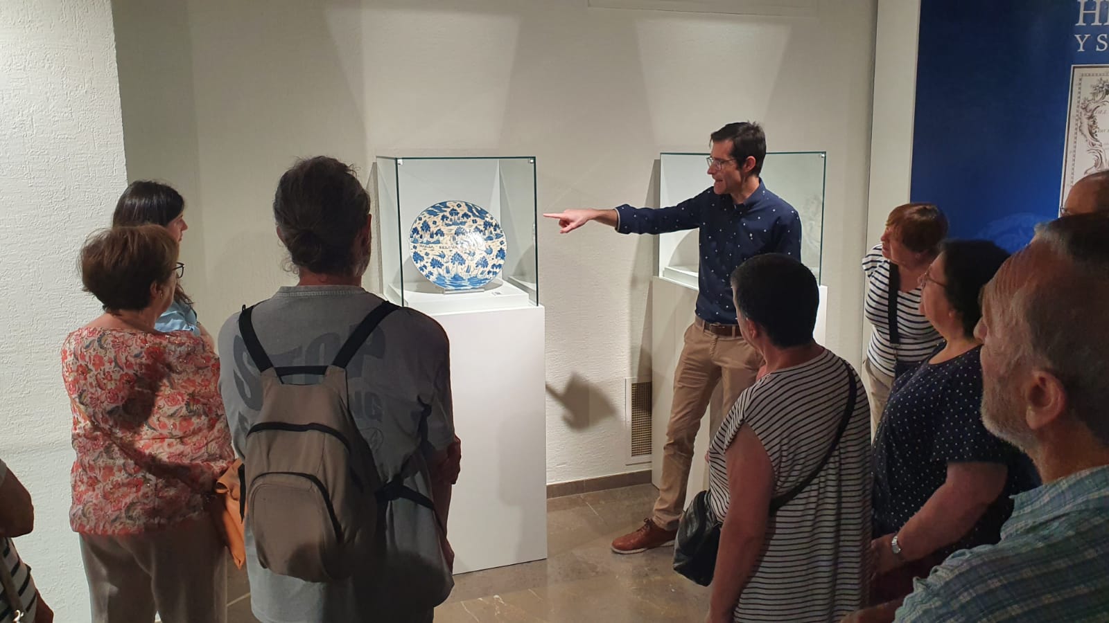 Pero las maravillas no se habían terminado todavía. En el otro extremo del parque de Abelardo Sánchez, el Museo de Albacete nos esperaba con la exposición «La loza de Hellín. Brillo y color». Comisariada por el también almanseño y Técnico Superior del Museo, Pascual Clemente, que ejerció de guía de excepción, nos desveló de una forma amena y precisa las claves de las producciones cerámicas de Hellín entre los siglos XVI y XIX, hasta ahora desconocidas para estudiosos y público en general. Por este motivo, la contextualización histórica de Hellín y sus alfares; el porqué de los colores de la loza (azul, bicolor y tricolor); la presentación cuidadosa de materiales y útiles del oficio, como el torno más antiguo de toda la provincia; la constatación del papel que desempeñaron los maestros, oficiales y aprendices, así como la influencia que tuvo el clero, los ayuntamientos y demás miembros de la sociedad civil en la producción cerámica hellinera; y, sobre todo, la reunión de piezas de gran calidad procedentes de museos y colecciones particulares que resaltan por sus variados motivos vegetales o zoomorfos, paisajes o heráldica, hacen de esta exposición un acontecimiento único e irrepetible, que ha marcado un antes y un después en el conocimiento de Hellín como uno de los centros cerámicos más importantes de la Edad Moderna.