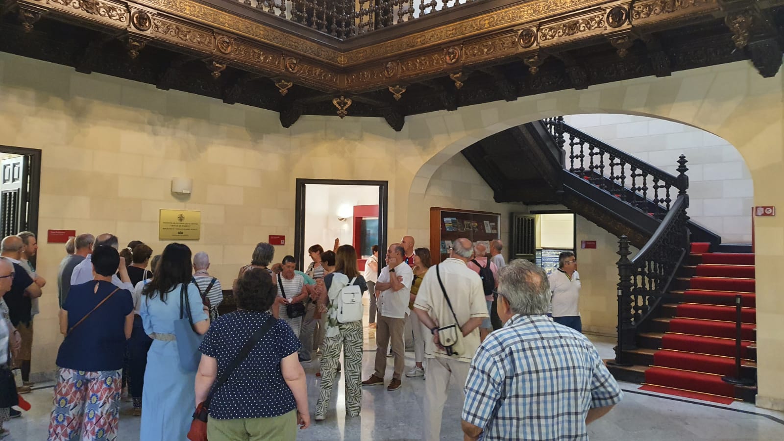 Después de atravesar la ornamentada reja, “uno de los mejores trabajos en hierro de su época” en palabras de Nines, nuestra guía y componente de la Asociación de Amigos del IEA, nos adentramos en un espacioso jardín jalonado de rocas “que cuentan la historia geológica de la provincia”. Desde allí accedimos al inmueble a través de una elegante escalinata y las maravillas comenzaron a sucederse una tras otra: pavimentos hidráulicos, azulejos talaveranos, artesonados en yeso imitando la madera, puertas labradas que ocultan espejos en su reverso, molduras y pilastras decorativas, una sala de estilo andalusí recubierta por completo de azulejos, yeserías y mocárabes que te transportan a la Alhambra, la escalera “imperial” que preside el vestíbulo principal y conduce al piso noble y a la galería superior rodeada por una portentosa balaustrada, lámparas de forja, vidrieras con delicados diseños y un sinfín de detalles que han sido recuperados en la rehabilitación dirigida por el arquitecto almanseño Joaquín García, que también formaba parte del grupo visitante. El chalé, un tesoro vivo enclavado en el corazón de Albacete, espera con los brazos abiertos a los amantes del patrimonio, a los investigadores e investigadoras de distintas disciplinas que deseen consultar los fondos que custodia y a cuantas personas quieran acercarse a descubrir esta singular joya albaceteña.