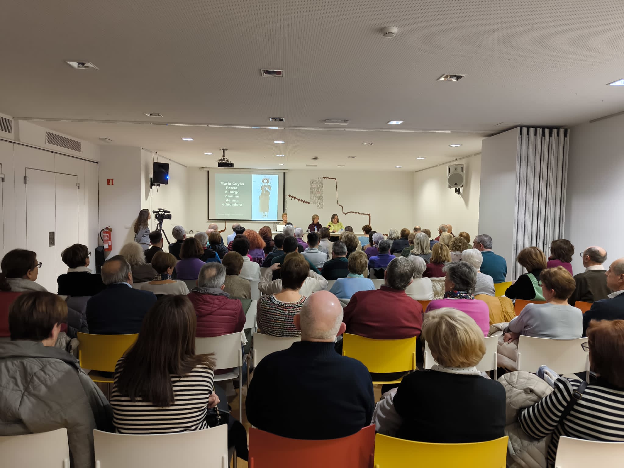 La tarde lluviosa y fría no fue impedimento para que los asistentes, que abarrotaron el salón de actos de Turismo Almansa, se mostraran deseosos de conocer la trayectoria personal y profesional de María, una mujer adelantada a su época, inteligente, luchadora y con un claro compromiso social: la promoción de los métodos pedagógicos innovadores, la modernización de la sociedad española de su tiempo y la apuesta decidida por lograr una educación pública y democrática, tal y como impulsaba la II República. Por ello, puso todo su empeño en ser maestra, profesora de Escuela Normal, escritora, traductora, inspectora de Educación y directora de la Residencia de Estudiantes en Lérida.