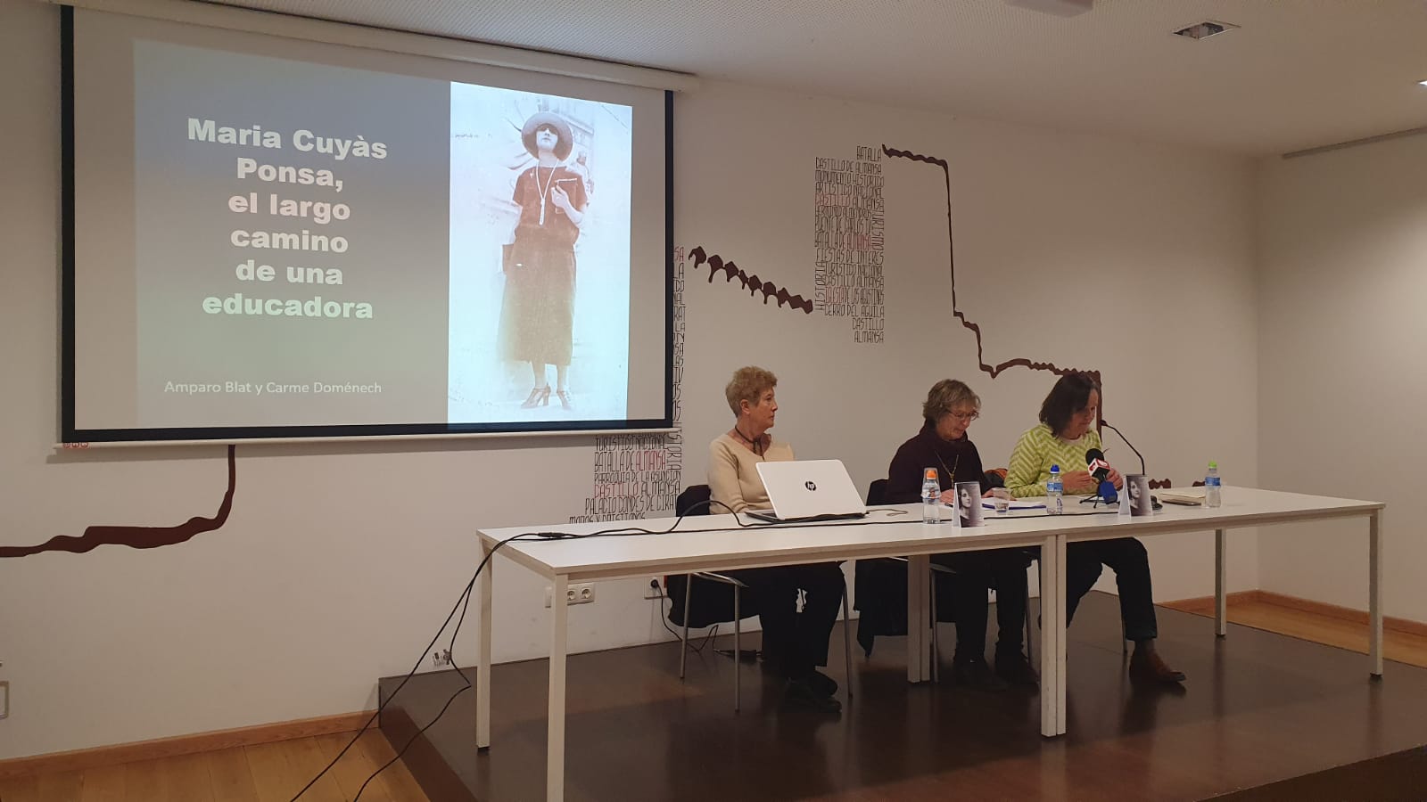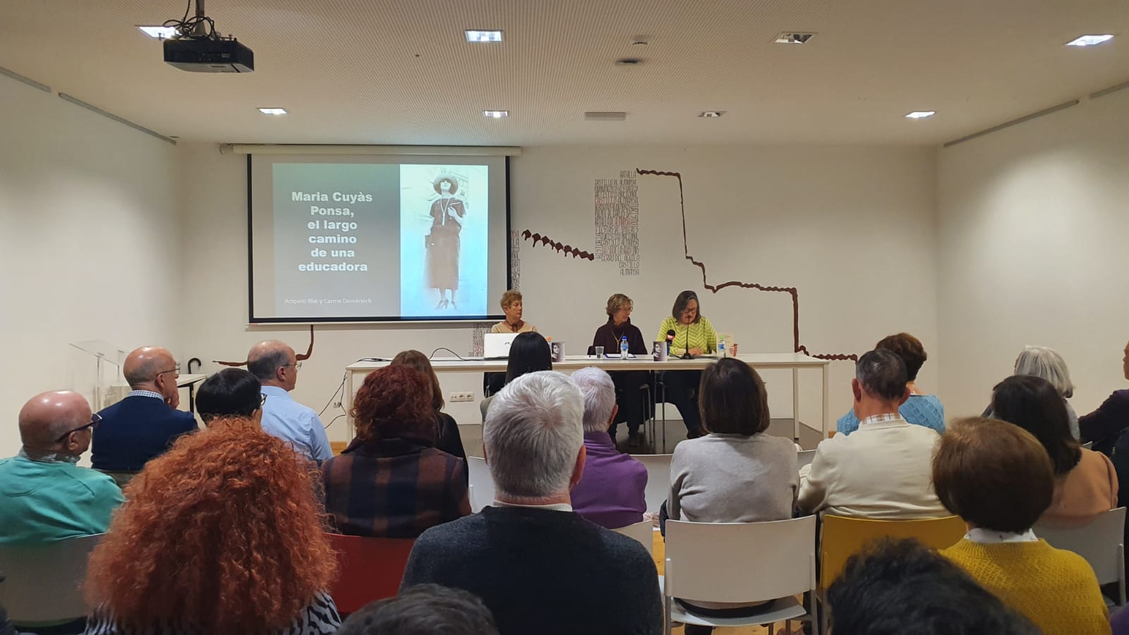 Ante el vacío de la distancia física y la dureza de los años de la posguerra, la correspondencia empleando palabras en clave, y la escritura de diarios como herramienta terapéutica fueron la tabla de salvación para mantener unidos a los Almendros-Cuyás hasta su reencuentro en La Habana diez años después. Allí, de nuevo tuvieron que volver a empezar de cero y a reconstruir sus vidas, sus esperanzas y su futuro. En los últimos años, ya fallecido Herminio Almendros, María Cuyás regresó a su Barcelona natal con una ingente misión: difundir la obra pedagógica y literaria de su marido. Fue un último servicio en su larga andadura de vocación como educadora, un hecho que resaltaron con emoción las ponentes de la charla.