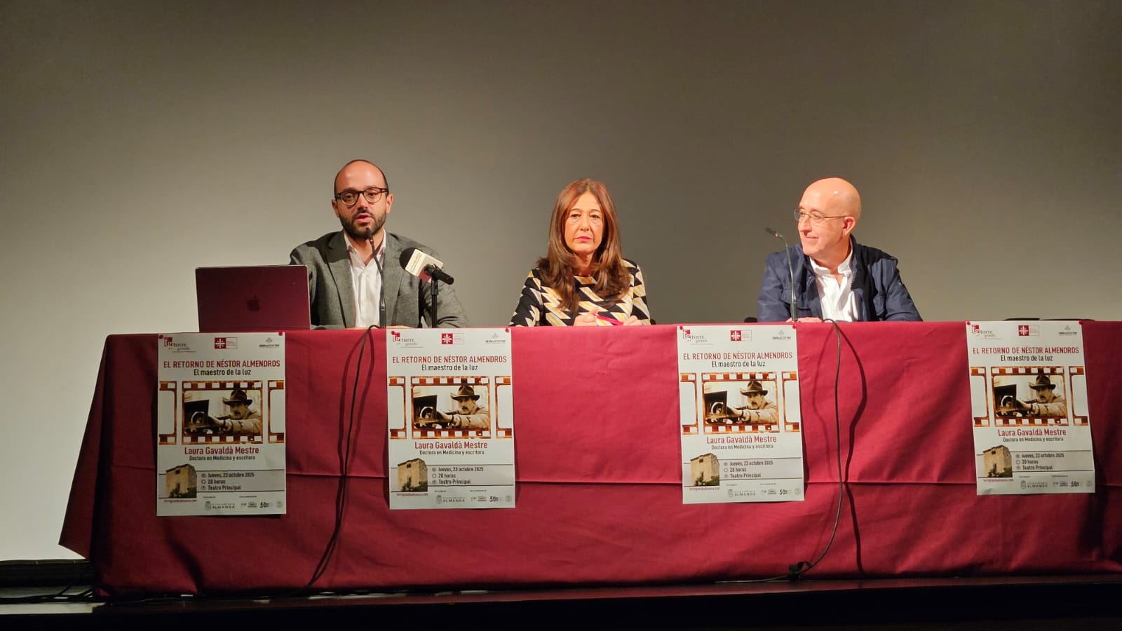 Con el título “El retorno de Néstor Almendros. El maestro de la luz”, comenzó la conferencia con un cortometraje realizado por alumnos y alumnas del IES Herminio Almendros y del IES José Conde García, que también (y como nota positiva) estuvieron presentes en el Teatro Principal. Siguió otro preparado por David Puertas.