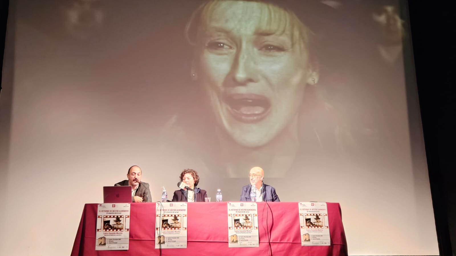 Cerraba la conferencia Laura Gavaldá. Venida expresamente de Barcelona y presentando el libro que recoge la trayectoria vital de Néstor, «El retorno y Néstor Almendros», narró de manera distendida y cercana la relación de su propia familia con la de los Almendros. Pero lo más sorprendente, sin duda, fue su encuentro con el oscarizado personaje en el verano de 1984. Algunas de las imágenes utilizadas para la ocasión fueron inolvidables. También hubo tiempo para algunas preguntas por parte de los asistentes.