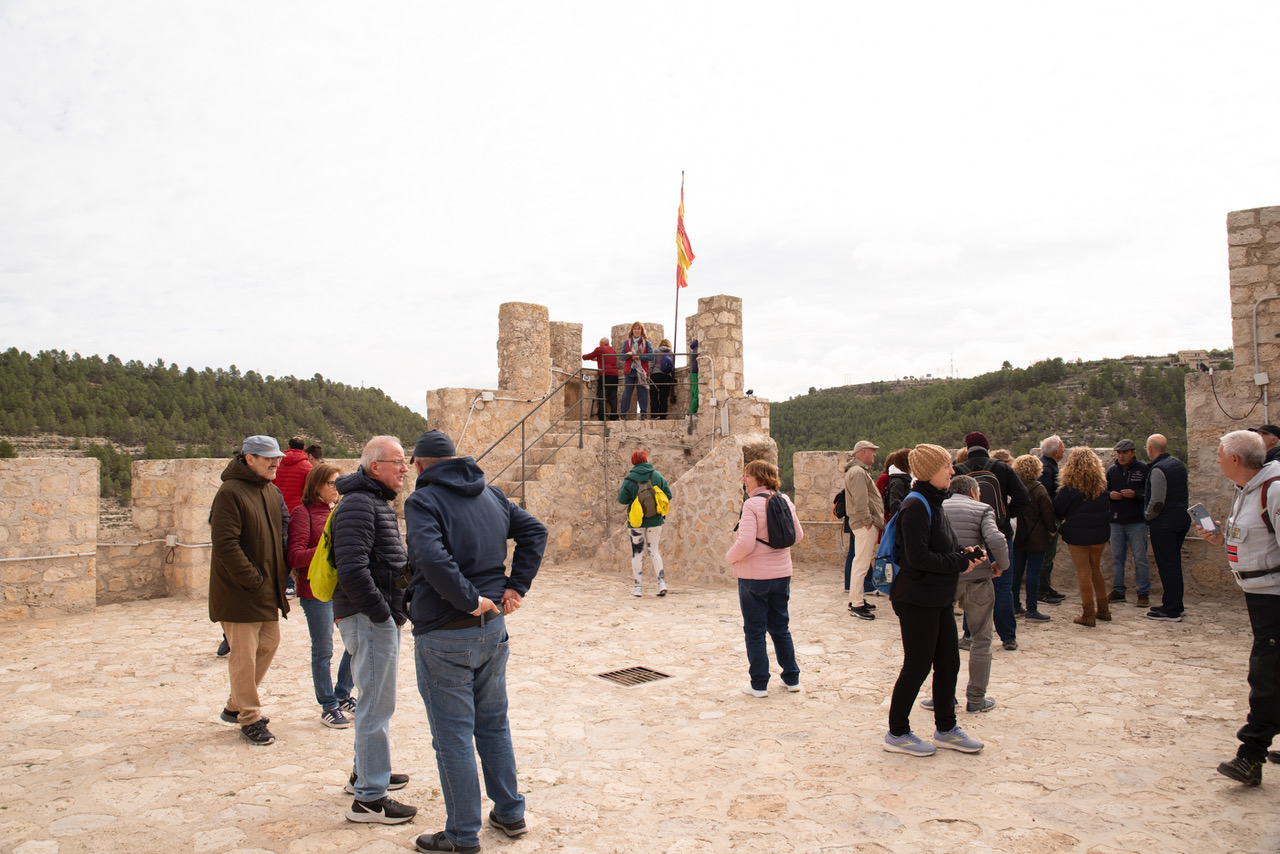 De la mano de nuestro nuevo Presidente, un grupo de 55 aguerridos almanseños cabalgamos a lomos de autobús por el valle del Júcar que, durante un tiempo, fue frontera entre Al-Ándalus y los reinos cristianos del norte. Visitamos las imponentes fortificaciones de Jorquera en un meandro encajado que, al igual que Alcalá del Júcar, controlaba uno de los pocos vados naturales del río; en Alcalá, las detalladas explicaciones de José Luis Simón nos permitieron entender los cambios que supuso la naciente artillería de asedio. También conocimos el poblamiento troglodítico de la zona y el estado de investigación arqueológica del territorio.
